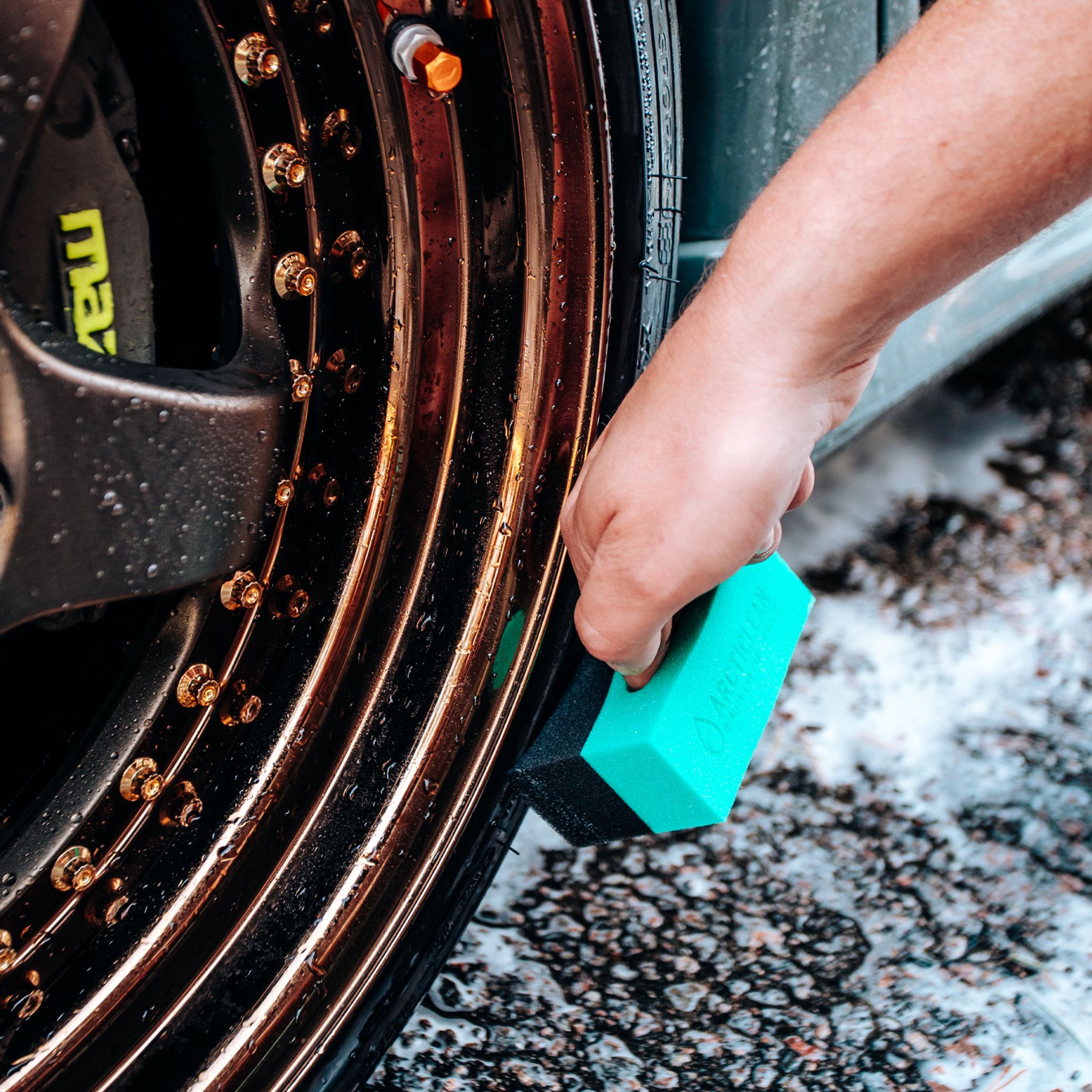 Applikator med konkav form speciellt framtaget för att applicera däckglans. Fungerar även perfekt för vinylglans då de spetsiga hörnen gör det lätt att komma åt i trånga detaljer.