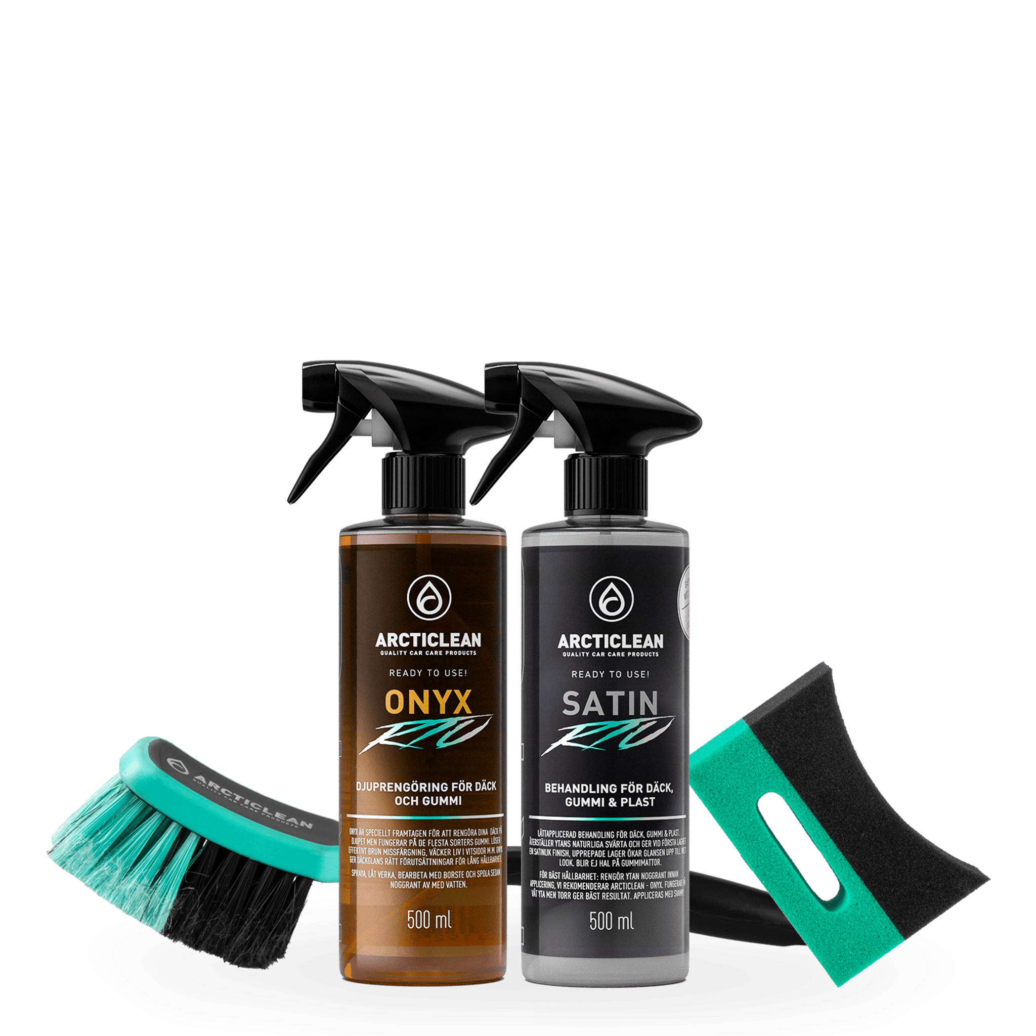 Med dom här produkterna så blir dina däck finare än någonsin. Onyx rengör på djupet och Satin skyddar och ger en jämnt fin svärta med sina keramiska egenskaper.