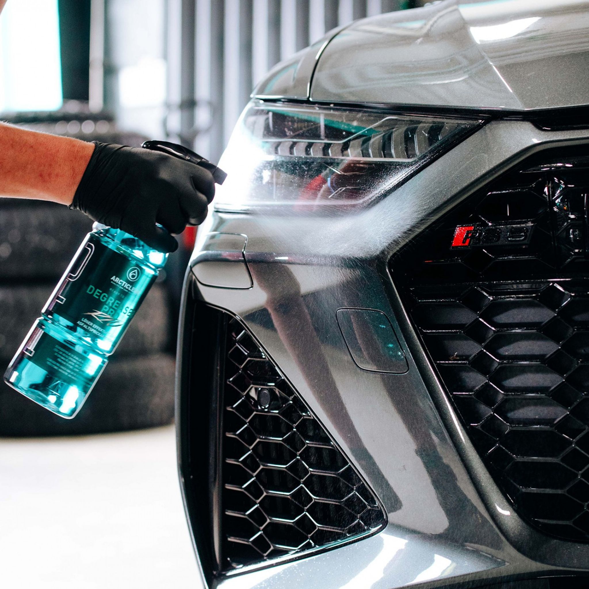 Vått eller torrt? Degreaser Pro är modern på så sätt att du kan applicera den även på en blöt bil med bibehållen effektivitet till skillnad från en klassisk kallavfettning som du enbart kan applicera torrt.