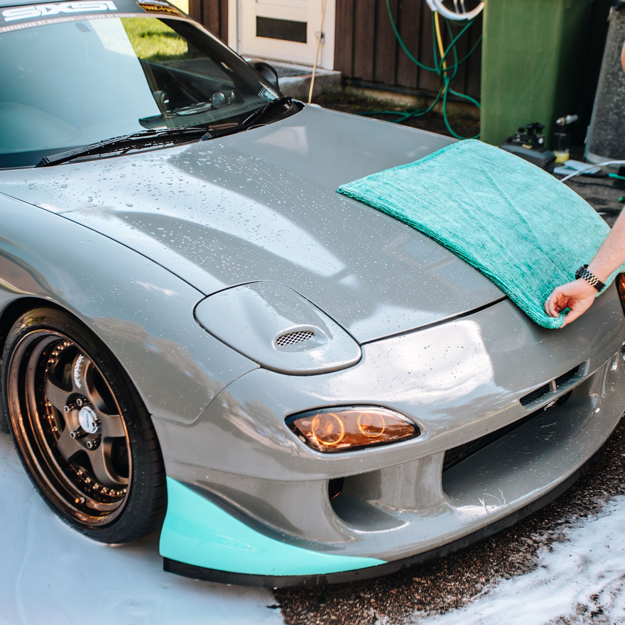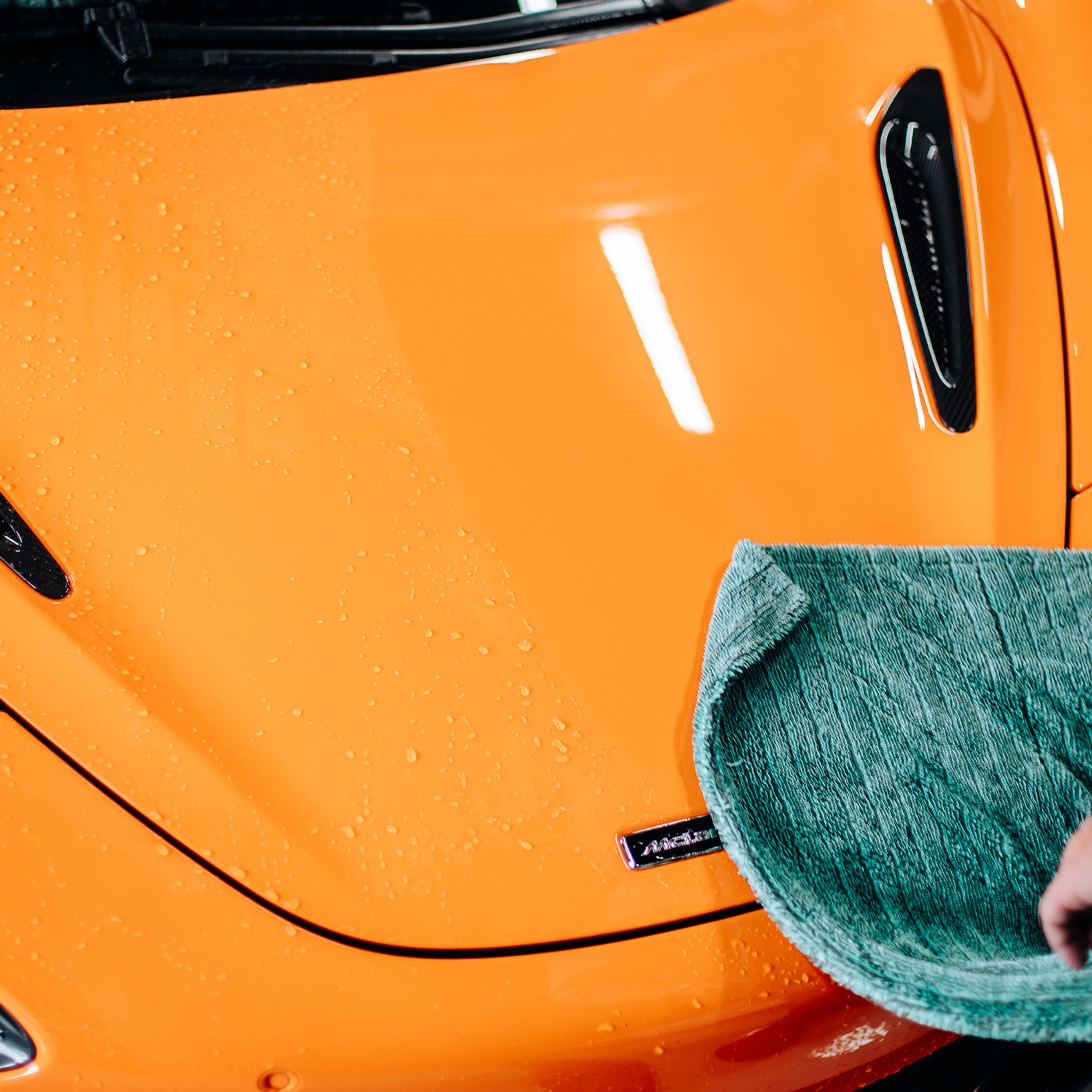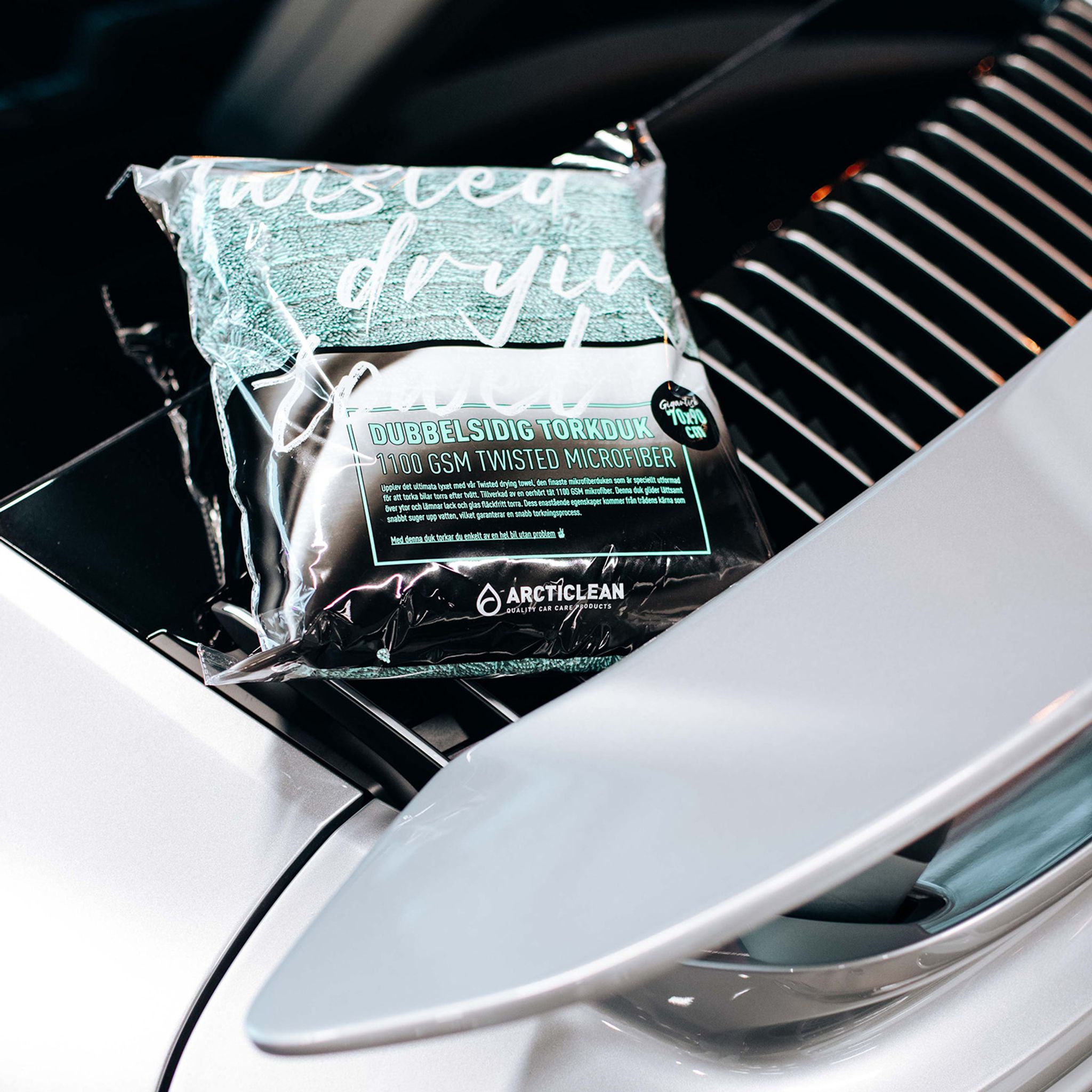 En torkduk och ett lackskydd är den bästa kombon! Har du inte möjlighet att lägga ett riktigt keramiskt skydd så kika på våran Speed coat, avrinningen som ett lackskydd ger gör att det mesta av vattnet vid en tvätt helt enkelt rinner bort av sig själv och arbetet med att torka bilen torr går mycket fortare.