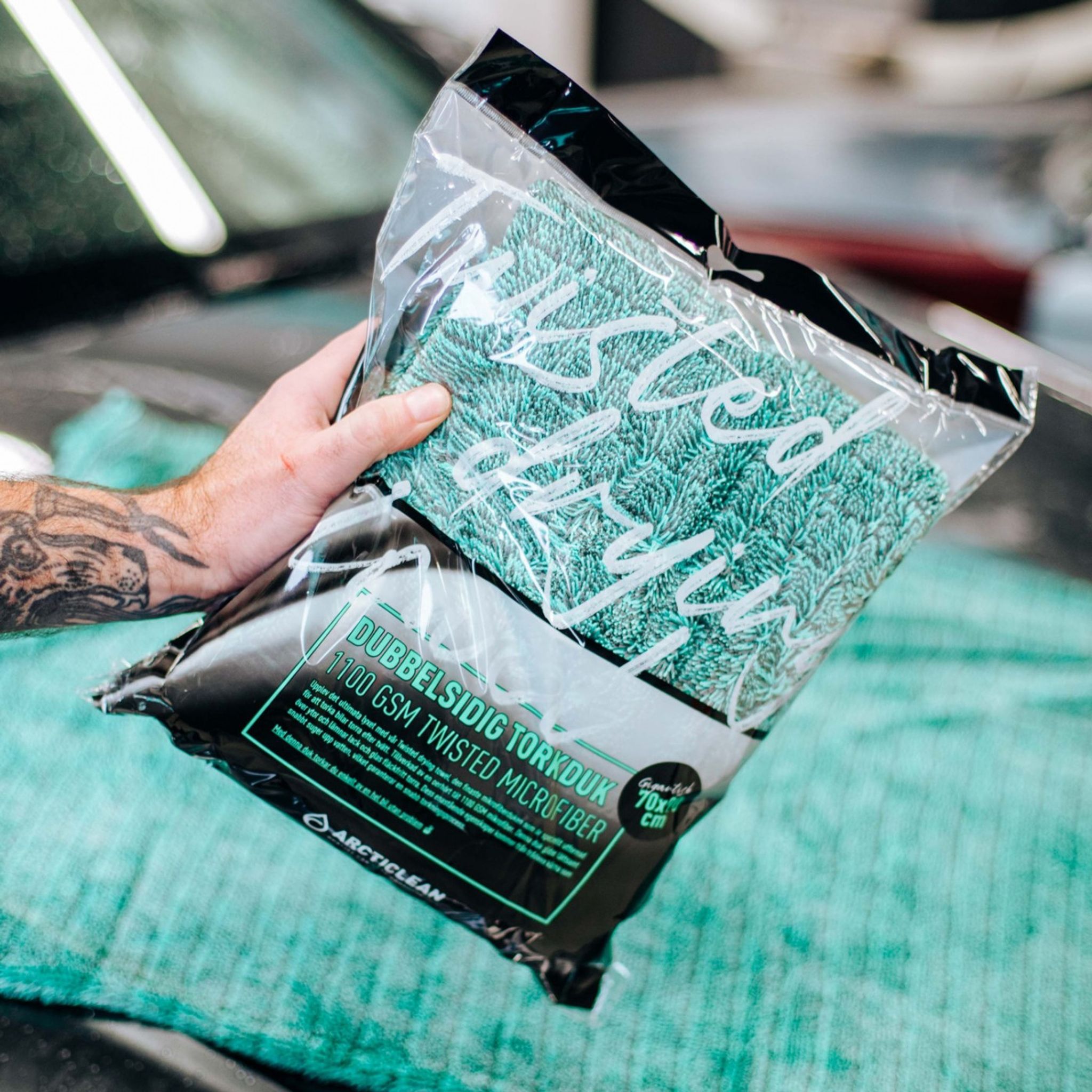 Förutsatt att du rengjort och tvättat fordonet noggrant innan du torkar med Twisted drying towel kan du efter användning hänga upp duken och låta lufttorka inomhus – redo för nästa gång! Det är dock alltid bra att tvätta din duk regelbundet för att hålla den fräsch. Tvättning av torkdukar är enkelt, de kan antingen handtvättas eller maskintvättas, innan de hängs upp för att lufttorka. Separera alltid dina torkhanddukar från andra mikrofibertrasor vid tvätt, eftersom de inte har utsatts för några kemiska produkter. Om du väljer att maskintvätta dem, begränsa temperaturen till under 40° Celsius och använd ett snabbt centrifugeringprogram för att avlägsna det mesta av vattnet, använd ej skölmedel eller mjukgörare. Torktumla eller använd inte varmvatten, eftersom detta kan smälta fibrerna. Vrid aldrig ur din torkduk.