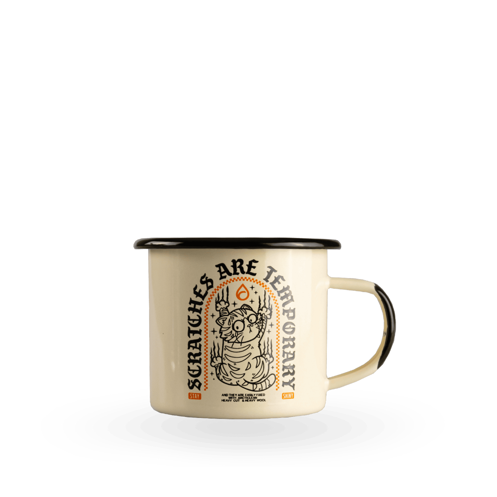 Emaljmugg med tryck. Scratches are temporary - and they are easily fixed with Arcticlean Heavy cut & Heavy wool.