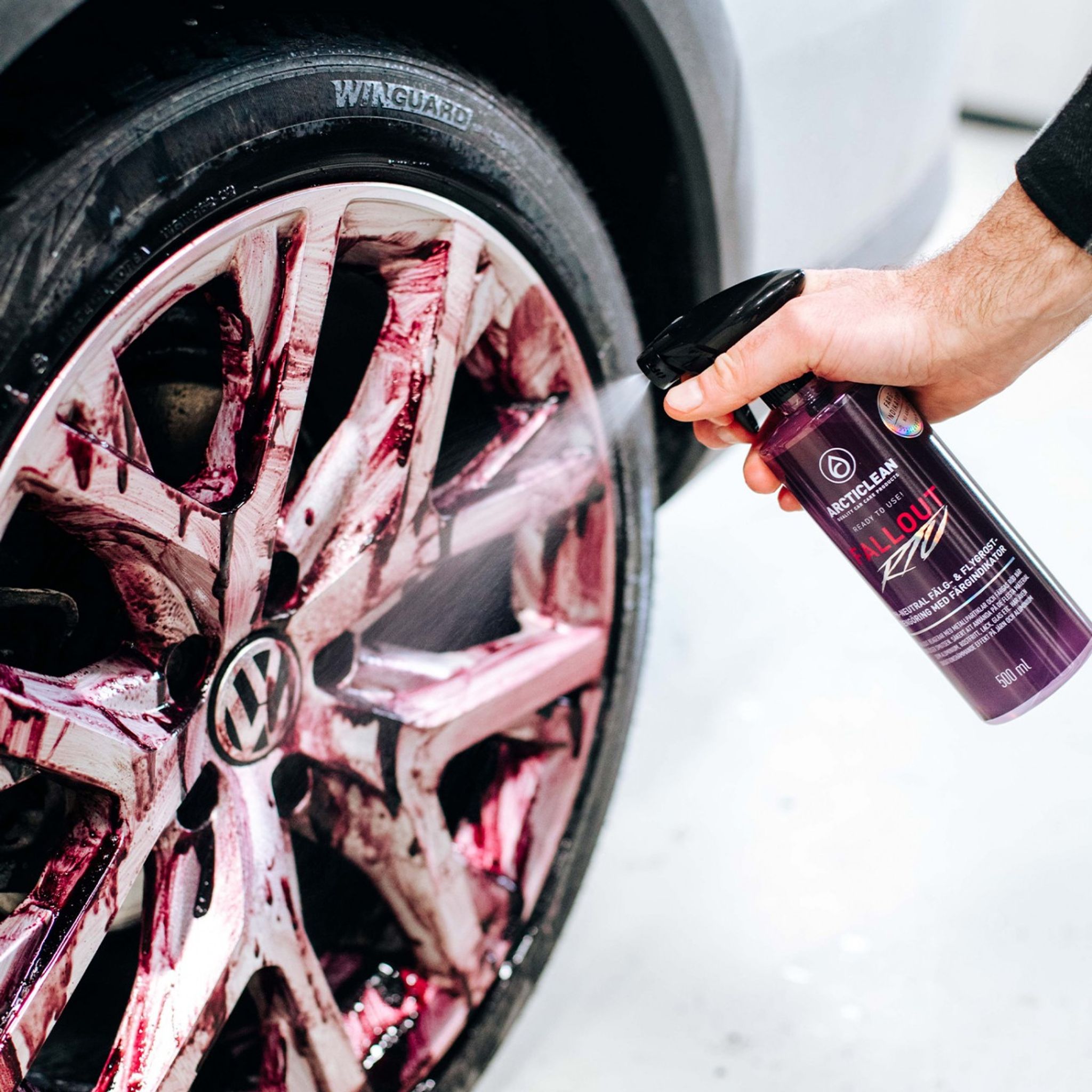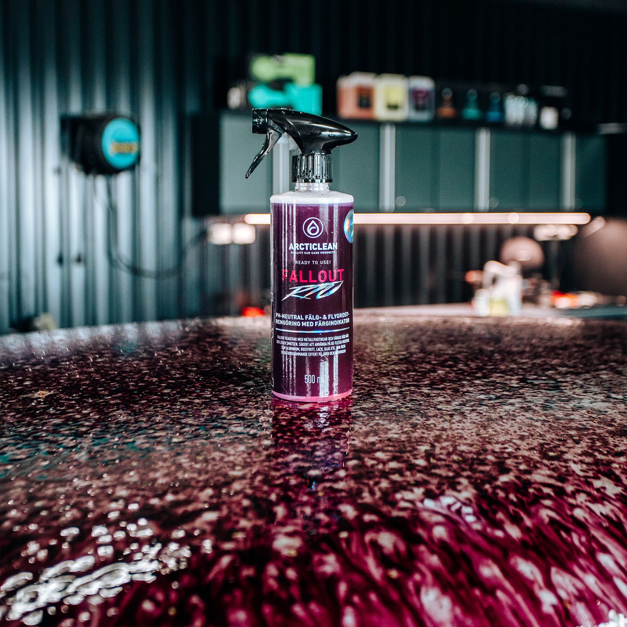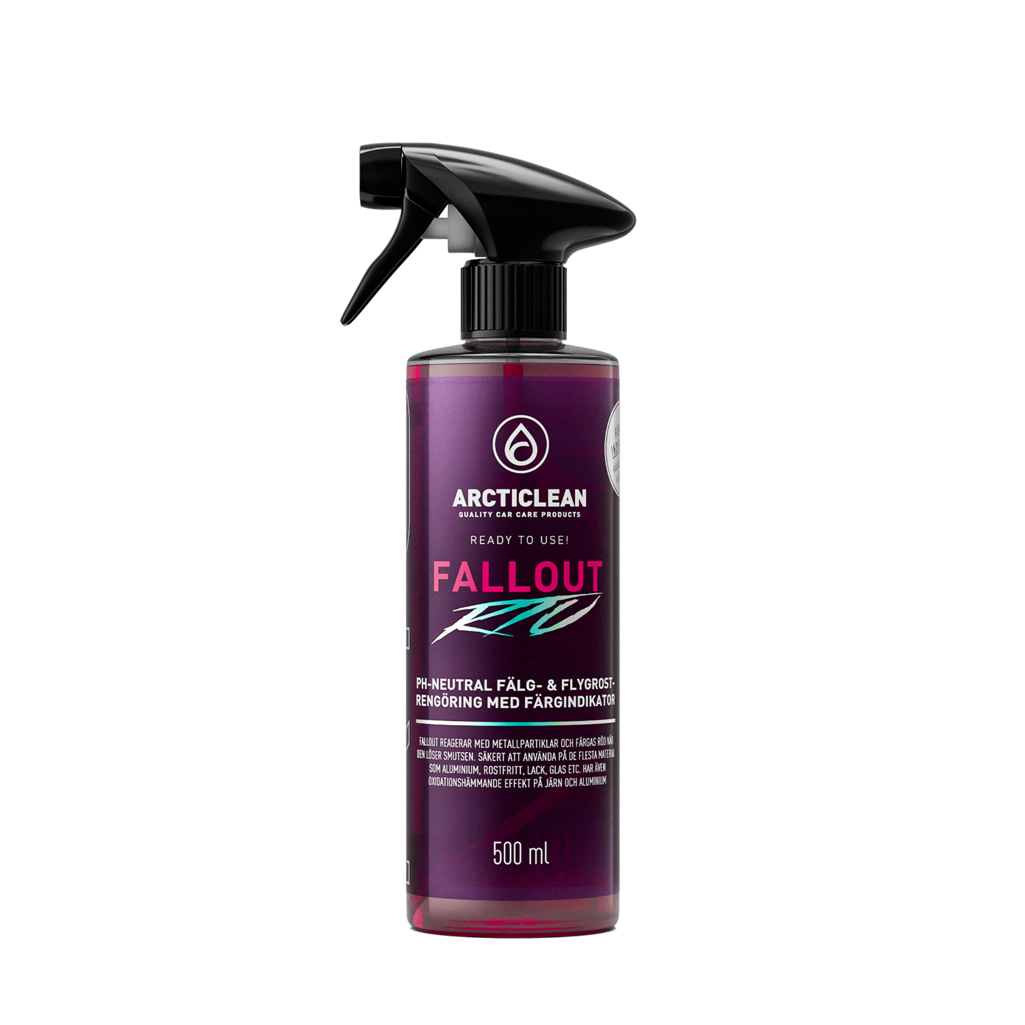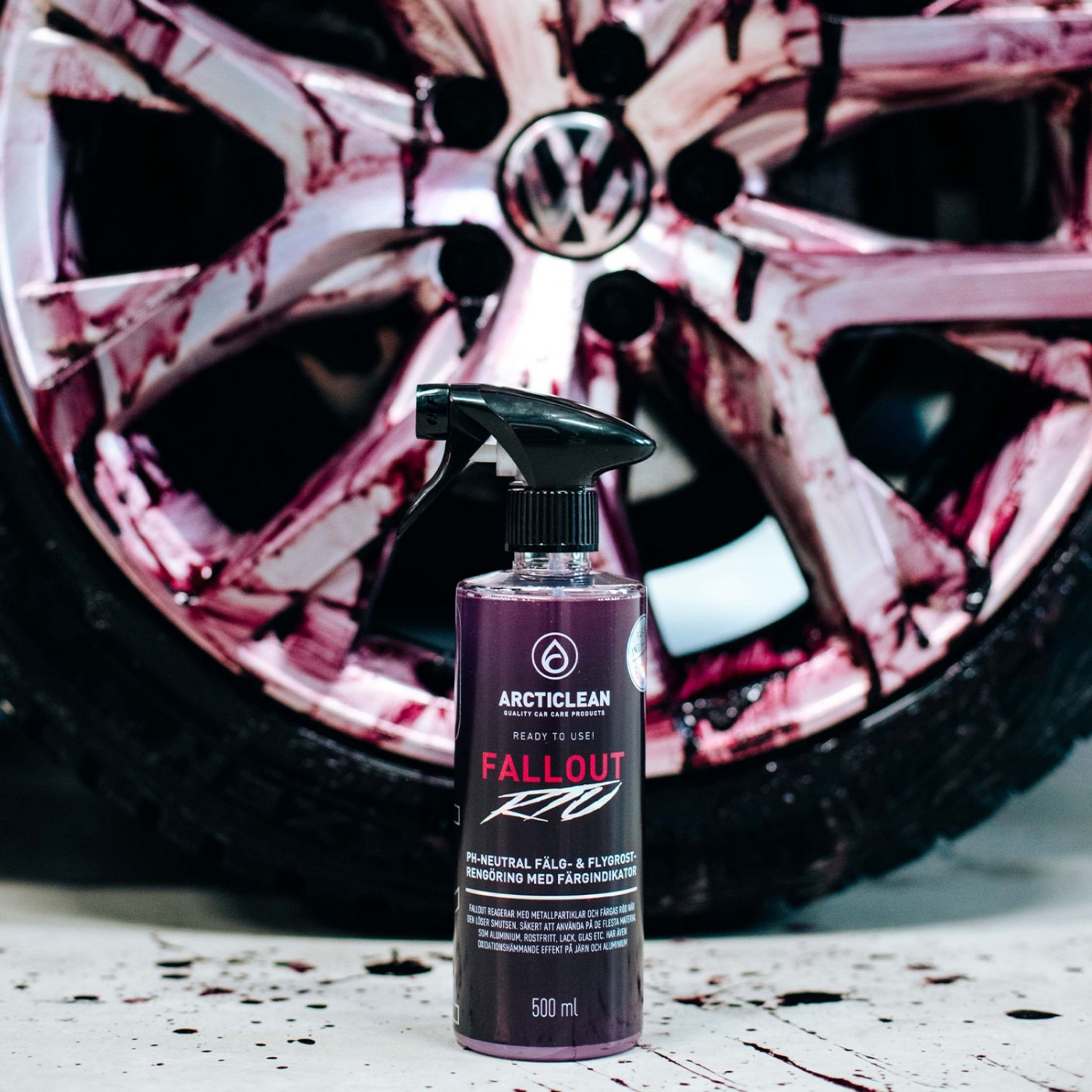 Enkel att använda - bara att spraya på outspädd direkt från flaskan, vänta några minuter medans Fallout verkar, sen spola av. Färgas röd när den reagerar med metallpartiklar och löser smutsen!
