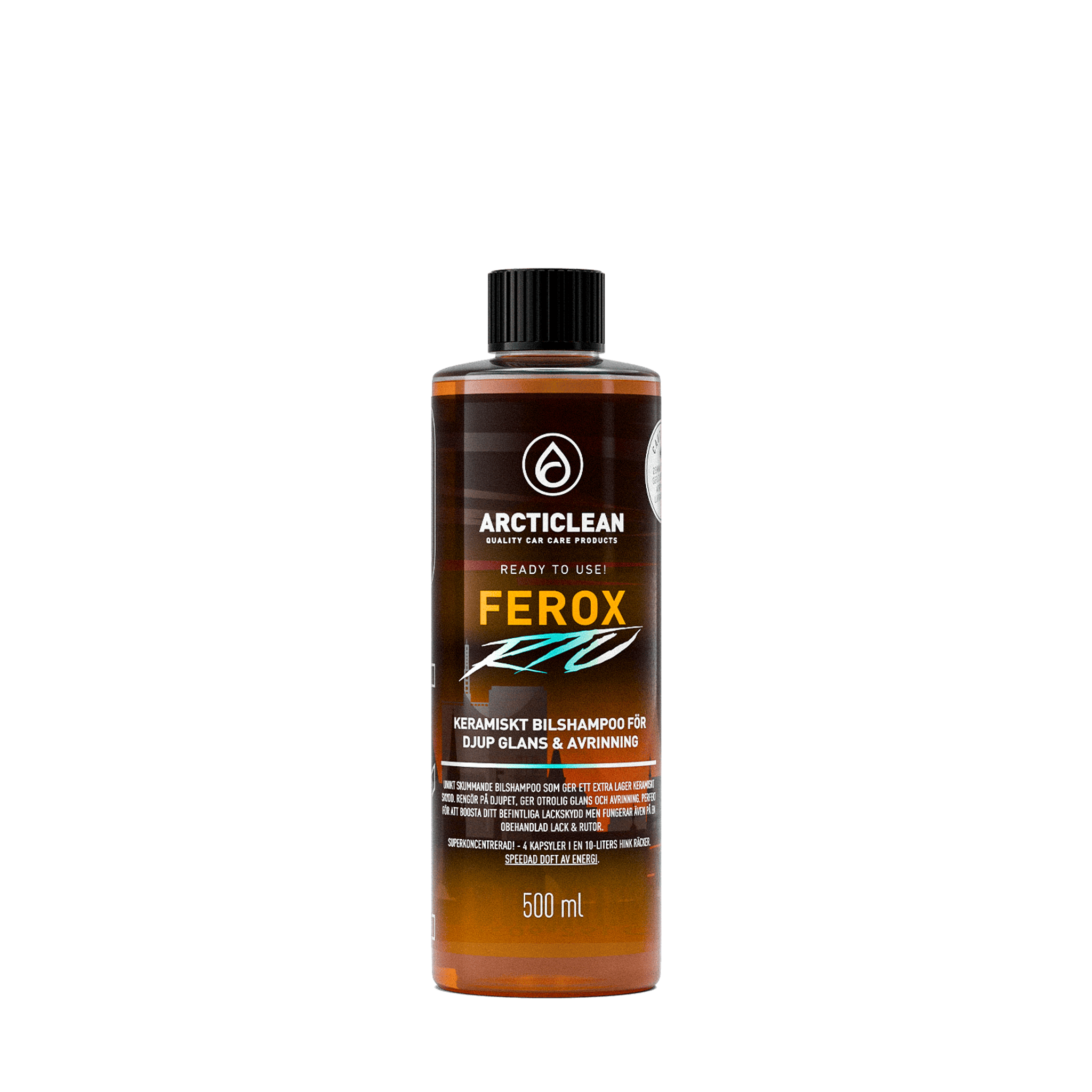 Ferox är säker att använda på alla lackade ytor men även fälgar, glas och plast. En tvätt med Ferox lämnar en skyddande yta med en hållbarhet på upp till 8 veckor. Tänk på att aldrig låta Ferox få torka, utan måste spolas av innan dess.