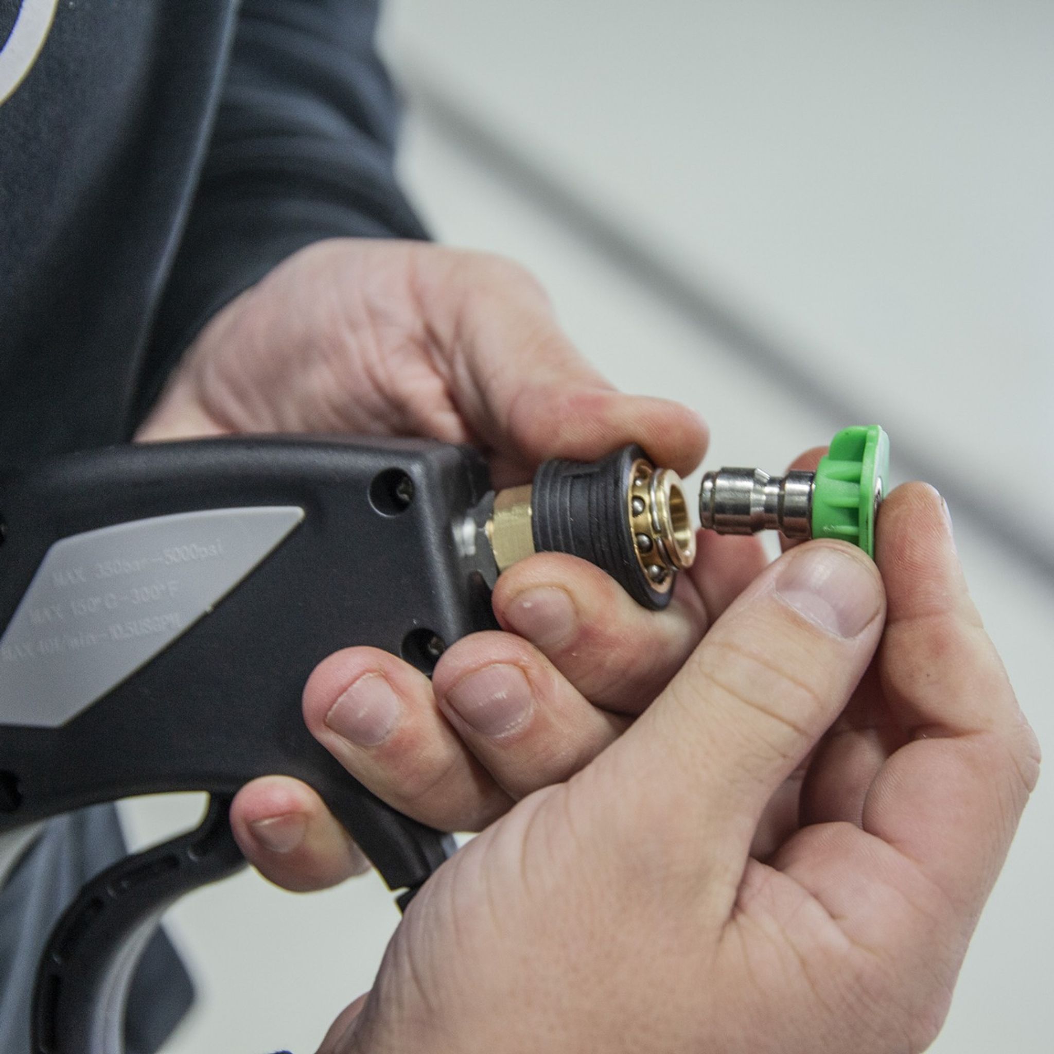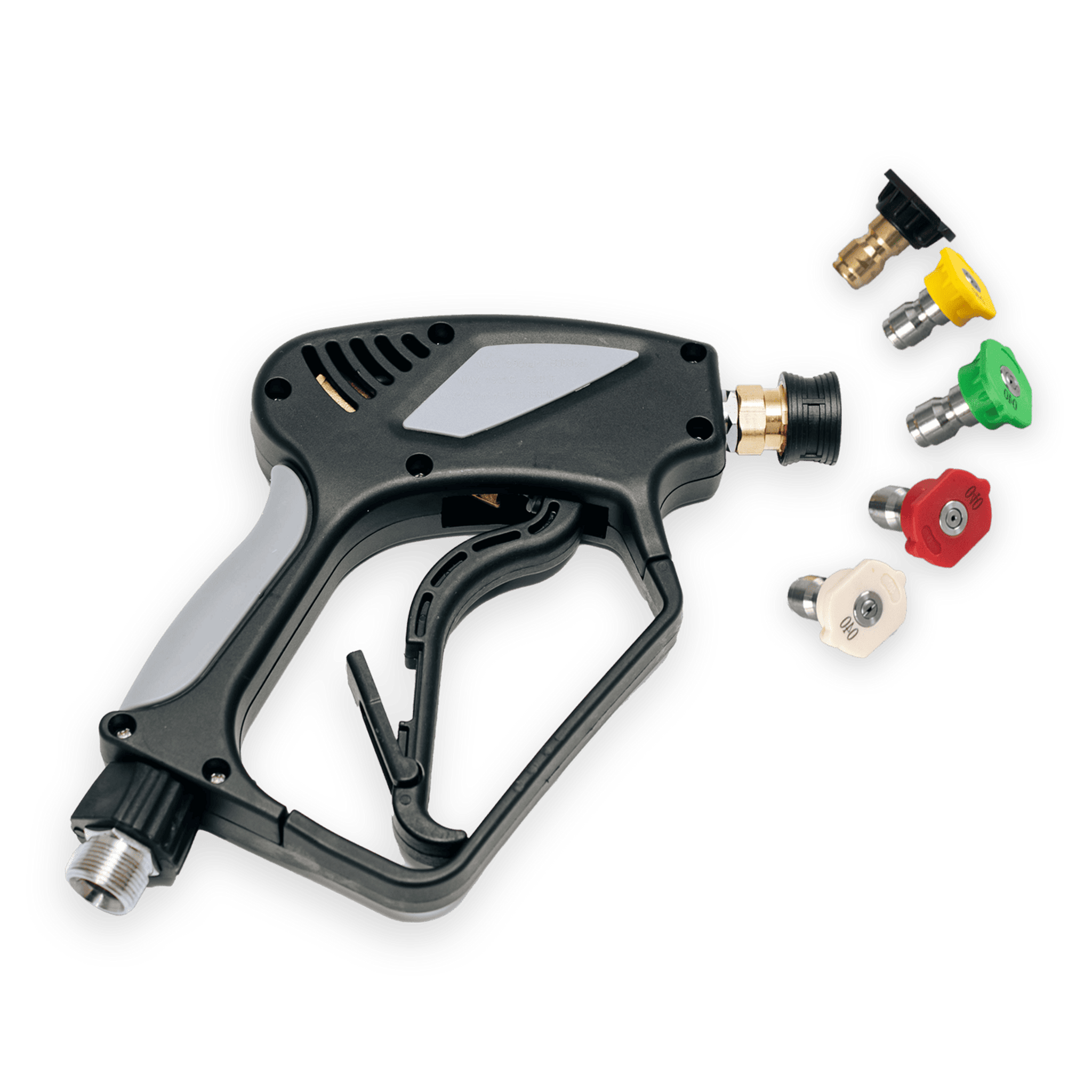 Perfekt spolhandtag när du vill använda tillbehör till din högtryckstvätt. Vi kopplar alltid vår Foam lance direkt på spolhandtaget för att få kortare avstånd och bättre kontroll. Medföljer fem stycken spolmunstycken.