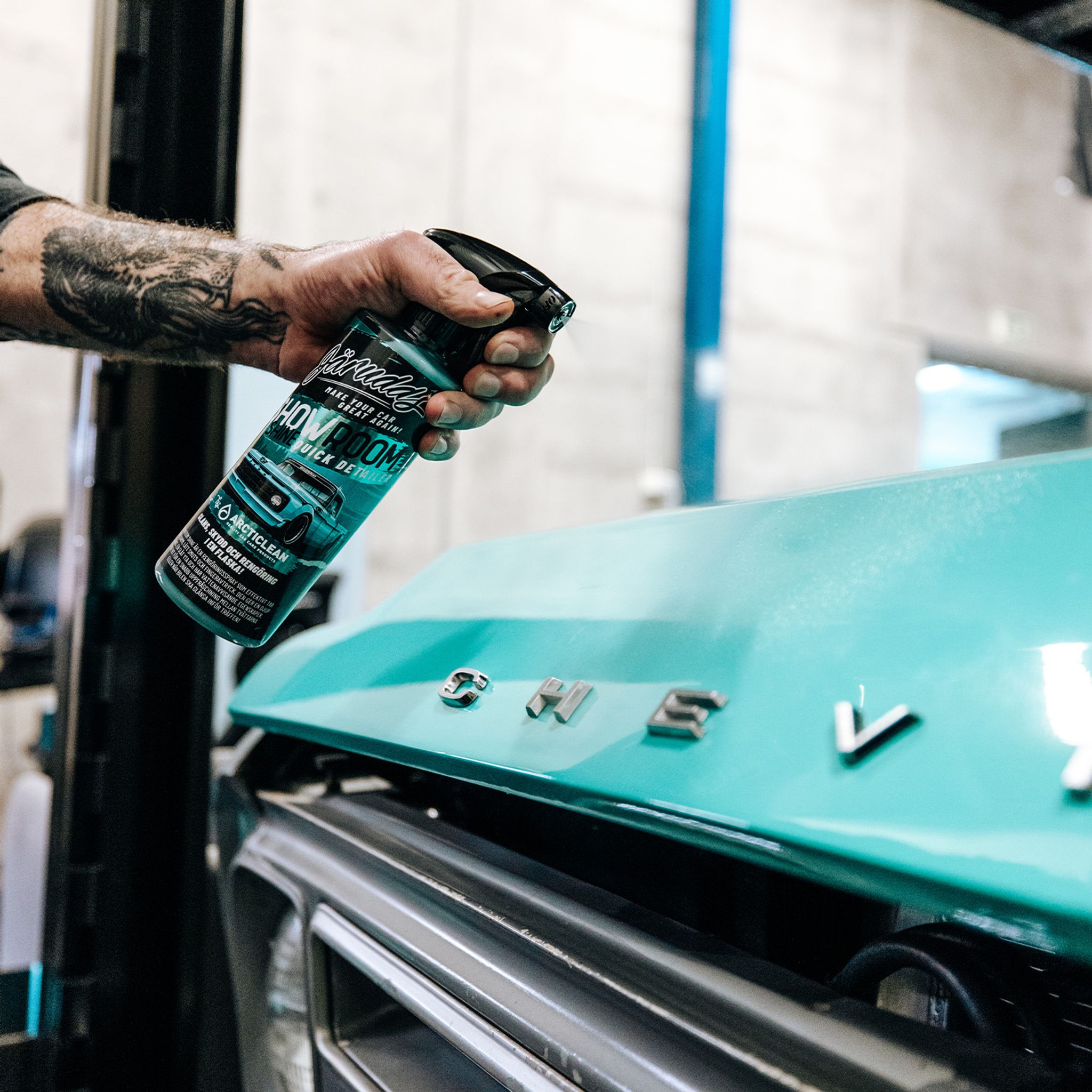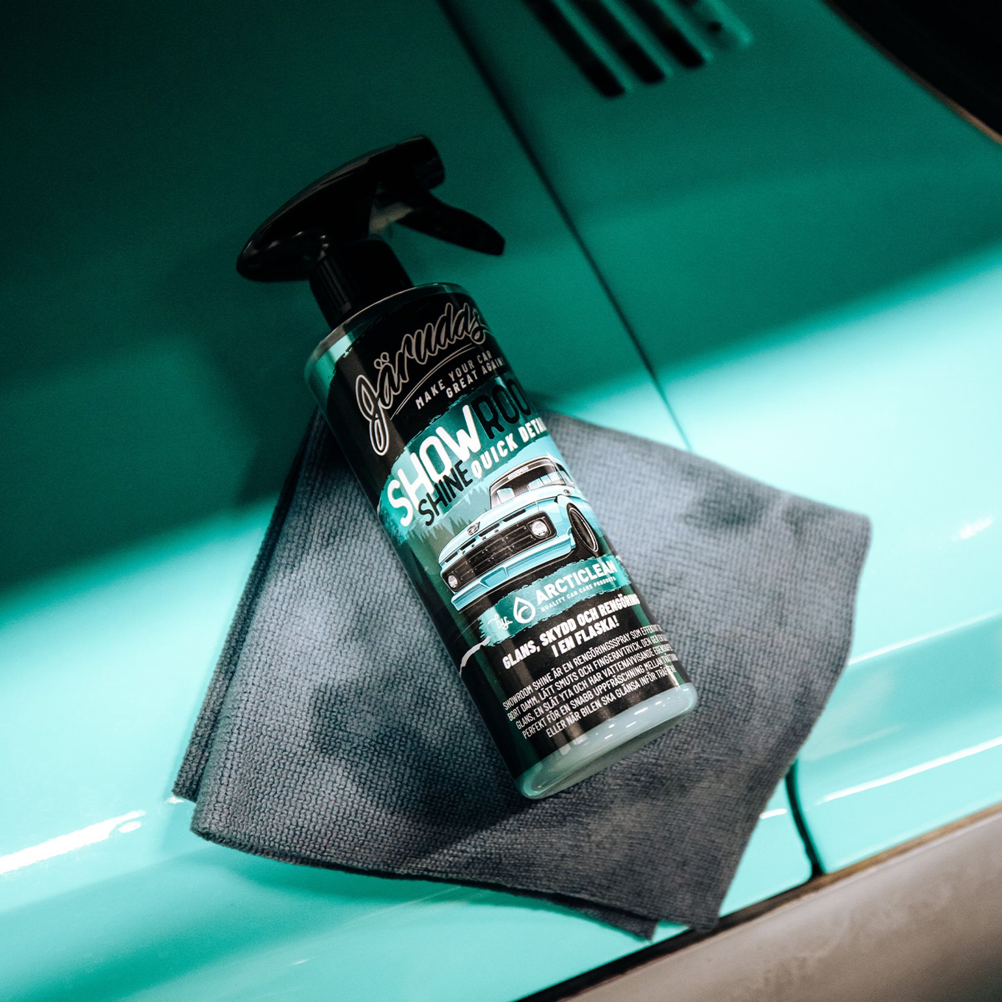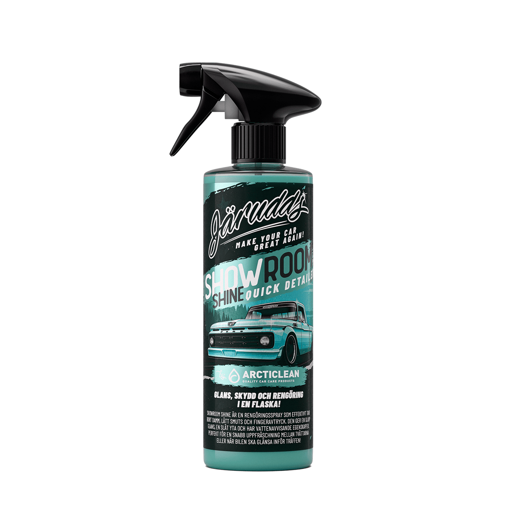 Showroom shine är en rengöringsspray som effektivt tar bort damm, lätt smuts och fingeravtryck. Den ger en djup glans, en slät yta och har vattenavvisande egenskaper. Perfekt för en snabb uppfräschning mellan tvättarna eller när bilen ska glänsa inför träffen!