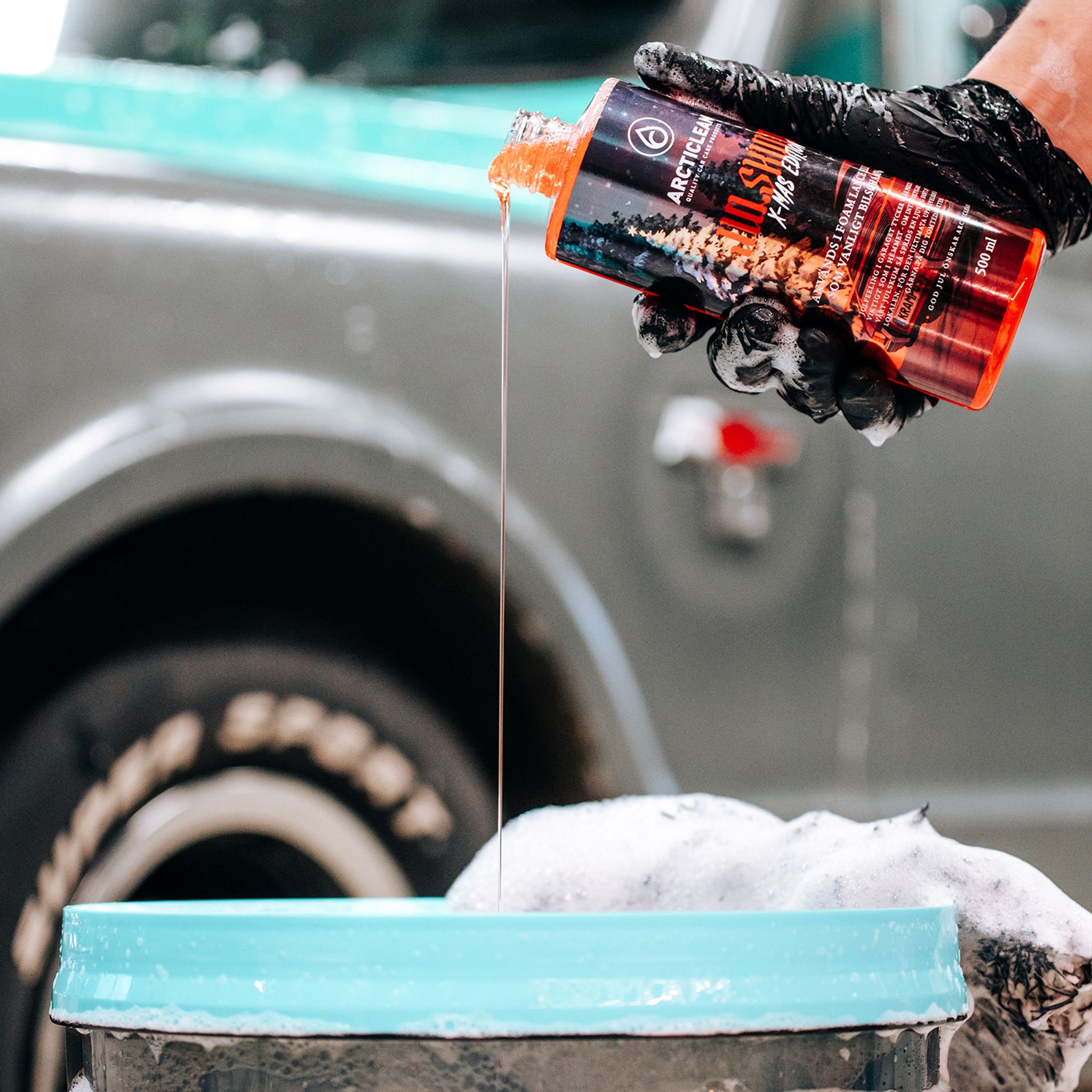 Julskum är ett juldoftande foam som du använder i din foam lance/skumlans - eller blandas i tvätthinken som ett schampo! Låt julskummet ligga och verka på bilen i 5-10 minuter, spola sedan av med högtryckstvätt och rikligt med vatten.