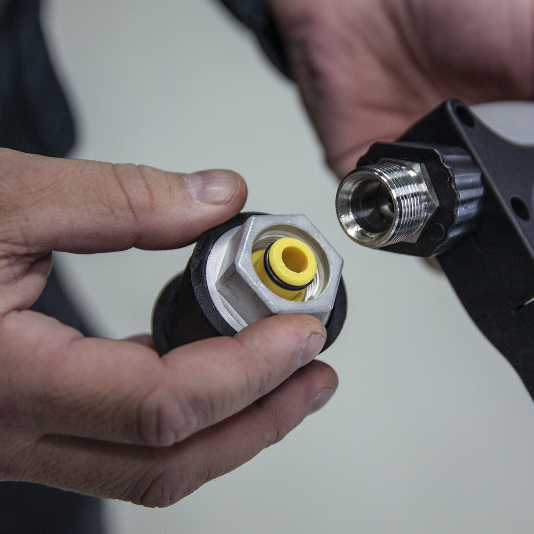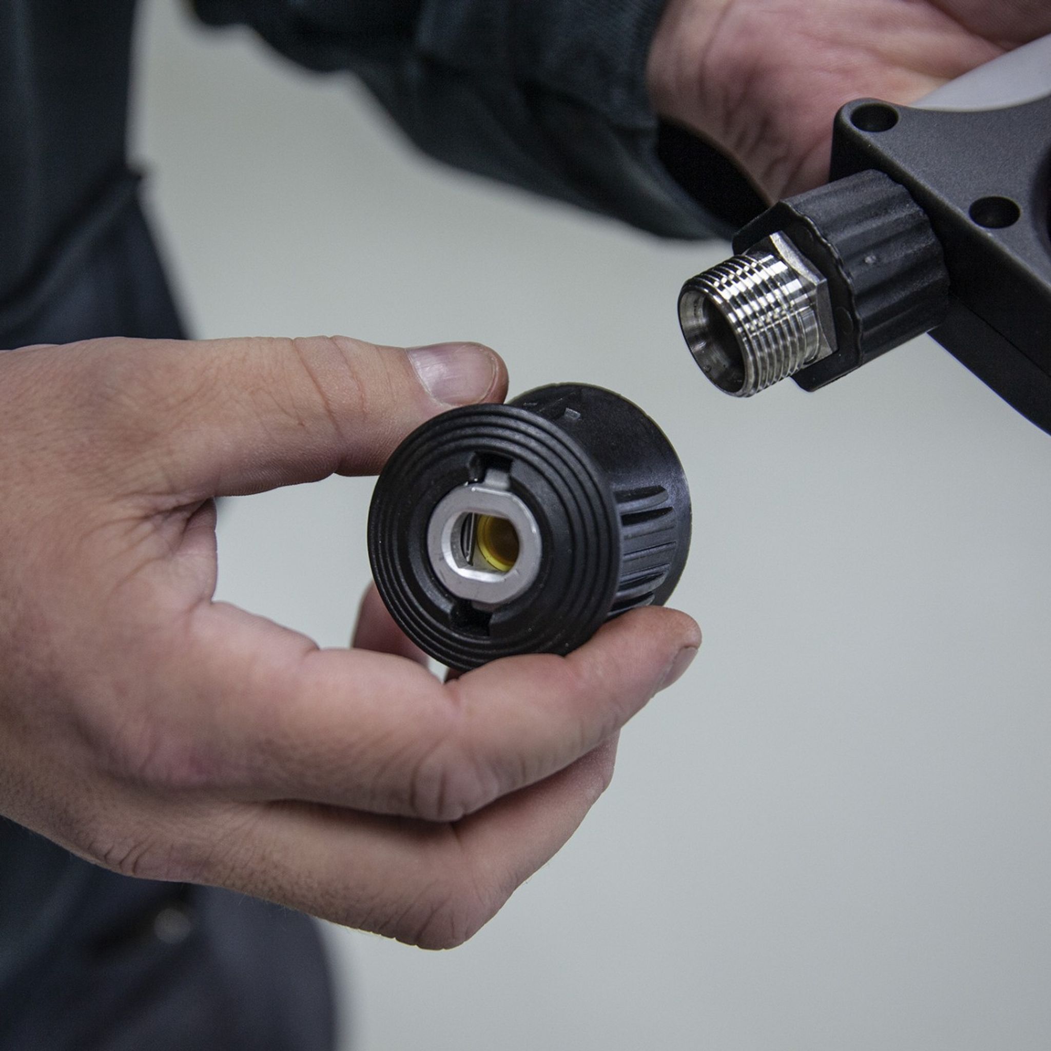 Vårt Högtryckshandtag - pistolgrepp och de flesta alternativen på marknaden har utvändig M22-gänga för att koppla ihop med högtryckstvätten. Med denna adapter så kan du koppla ihop pistolgreppet med nyare Kärcher K-högtryckstvättar. Jämför med bilderna för att avgöra om den passar din tvätt.