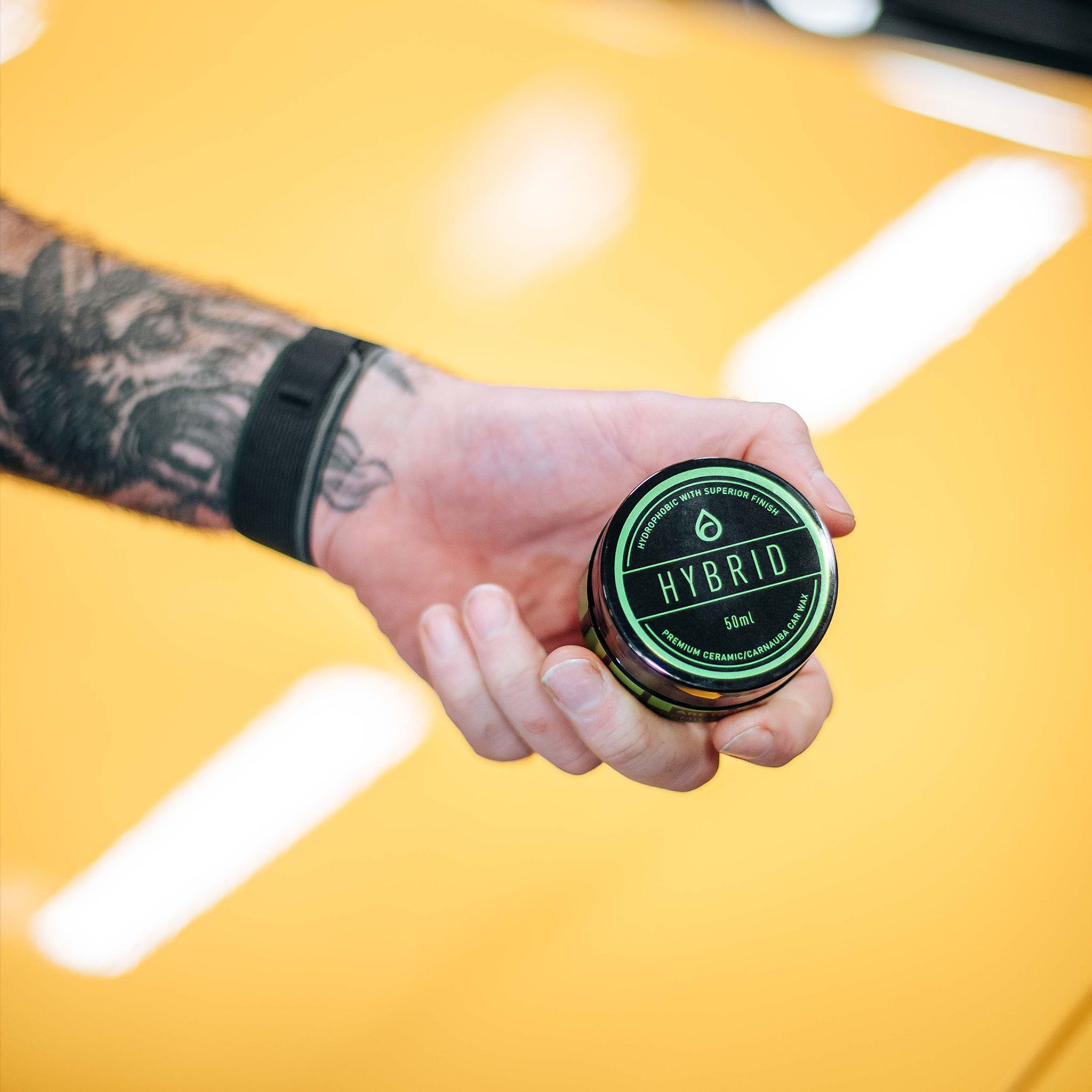 Känslan av ett klassiskt vax tillsammans med egenskaperna från keramiska skydd = Hybrid! Med vårt hybridvax får du på ett enkelt vis ett svårslaget djup i lacken, ett bra skydd och en fantastisk avrinning.