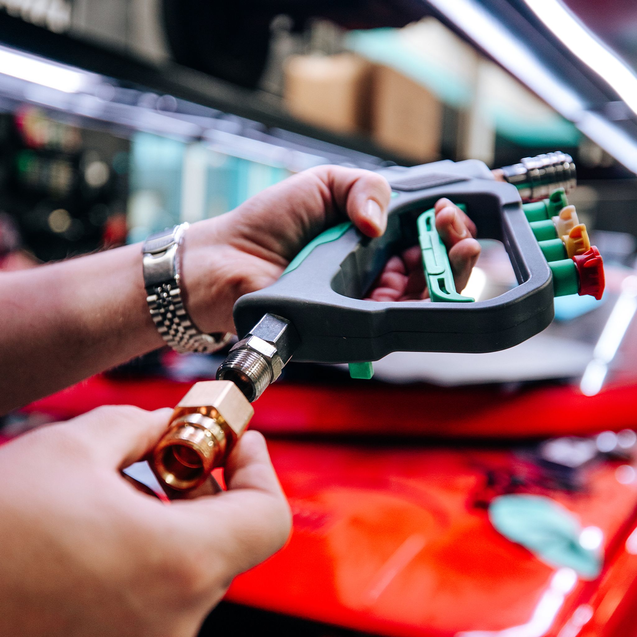 Vårt Högtryckshandtag - pistolgrepp och de flesta alternativen på marknaden har utvändig M22-gänga för att koppla ihop med högtryckstvätten. Med denna adapter så kan du koppla ihop pistolgreppet med kärchertvättar som använder Kärcher Easy Lock gänga. Jämför med bilderna för att avgöra om den passar din tvätt.