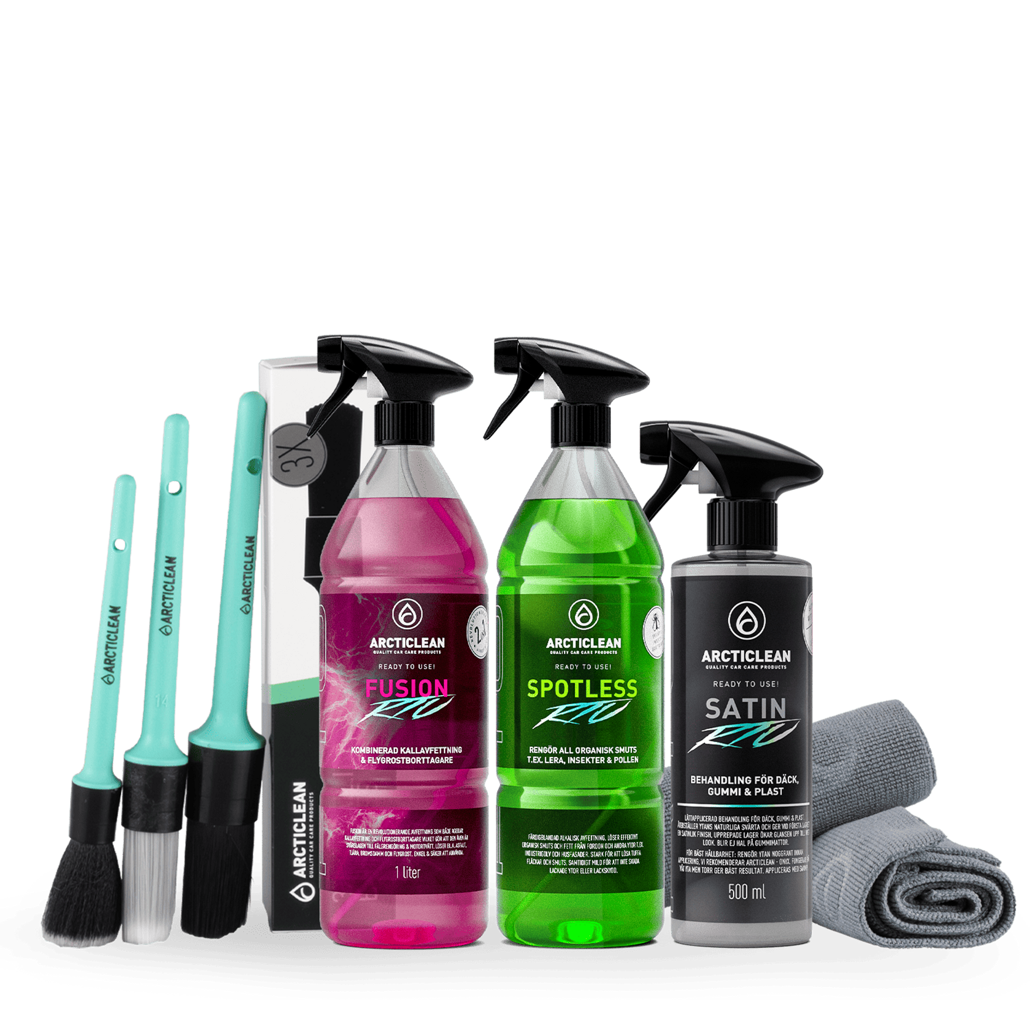 Med det här paketet så får du allt som behövs för att göra en motortvätt och därefter behandla motorutrymmet för att få en extra fin lyster, ytorna blir mer smutsavvisande och det blir lättare att tvätta vid nästa tillfälle.
