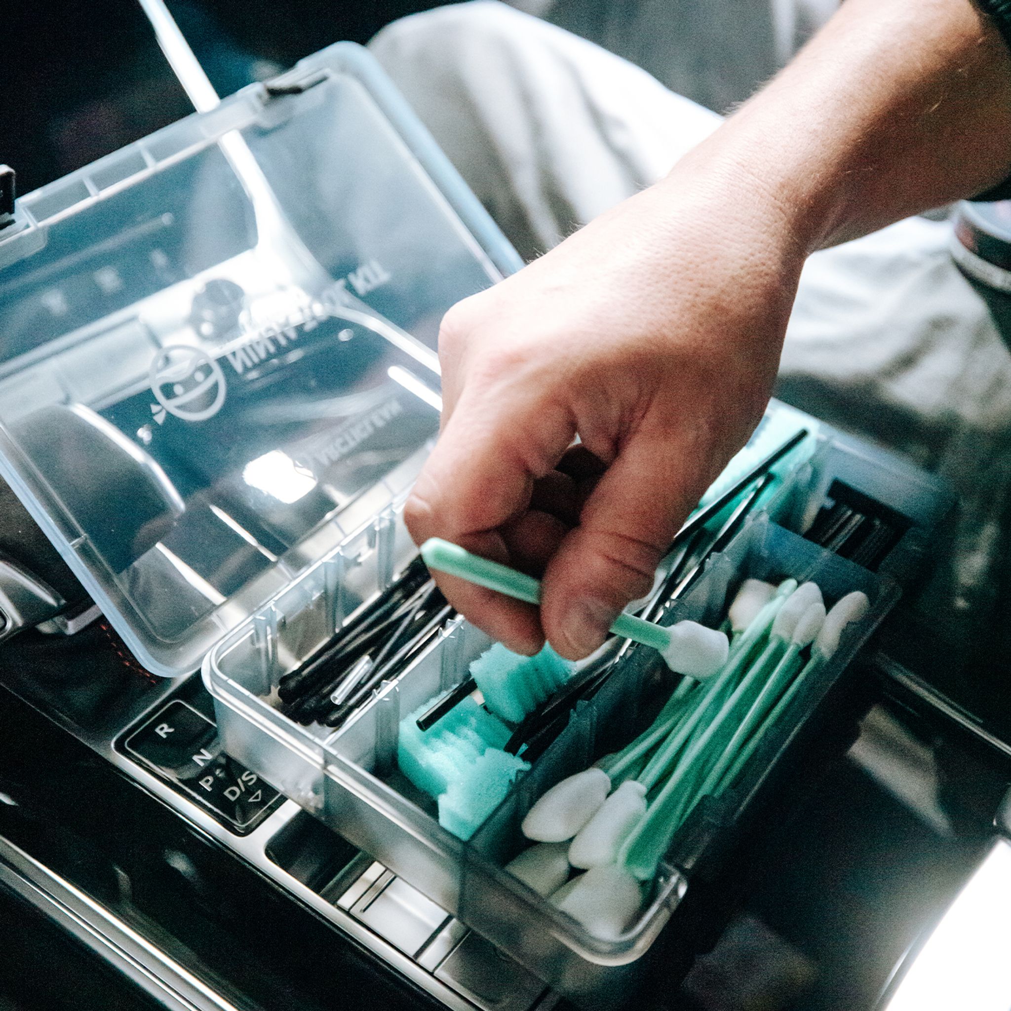 Som pedant är det lätt att frustreras över de sista dammkornens envishet i skrymslen och vrår - men med rätt ninjaverktyg är det inga problem alls. Vi har dessutom utökat boxen med ett gäng stenskottspenslar och en plastrakbladsskrapa - allt för att du ska vara välutrustad och redo att lösa även de minsta bilvårdsbekymren.
