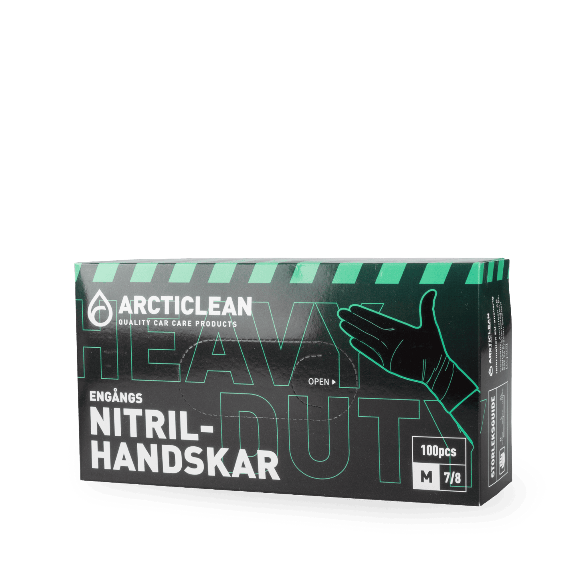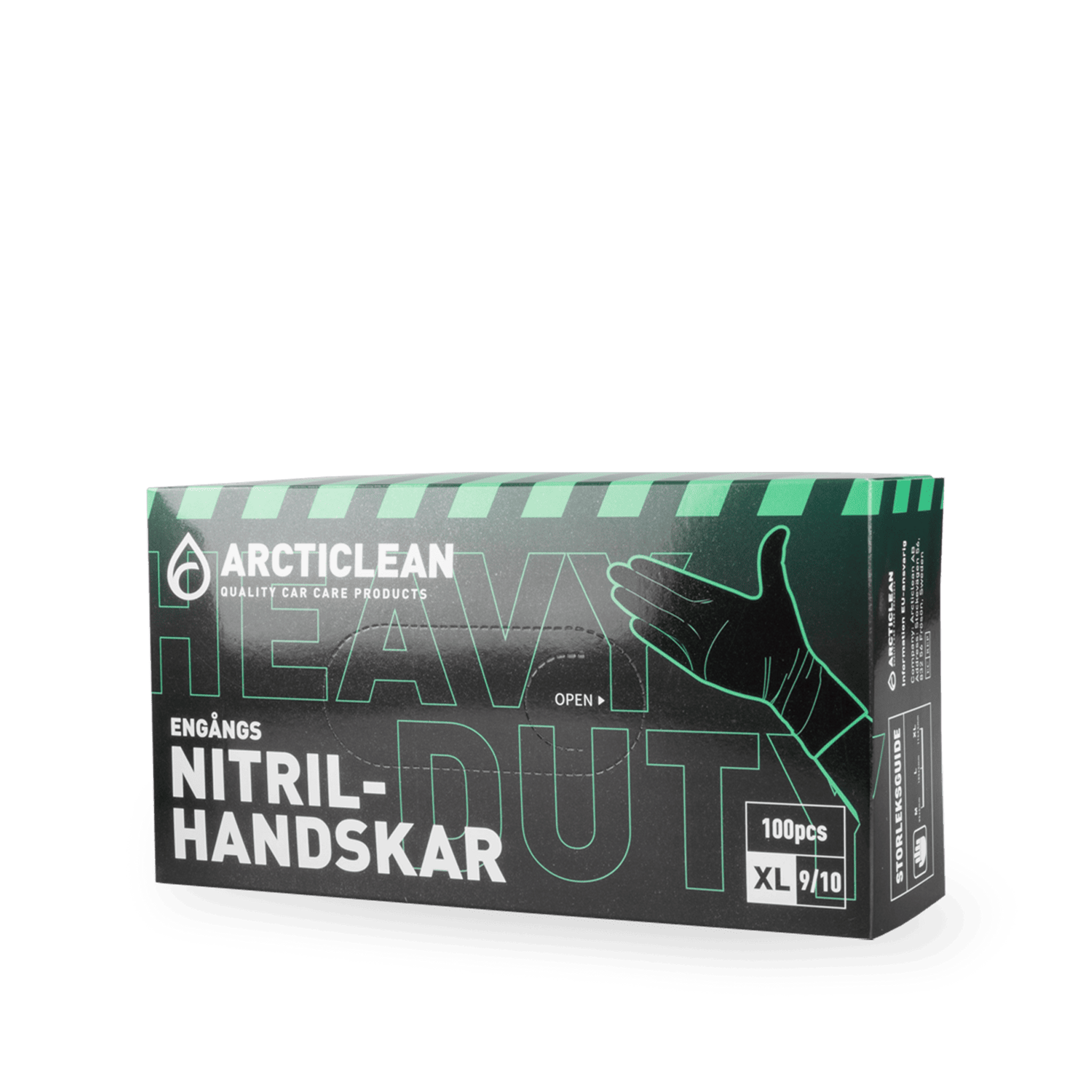 Puderfria, svarta Nitril-handskar i extra slittåligt material med struktur i fingertopparna.