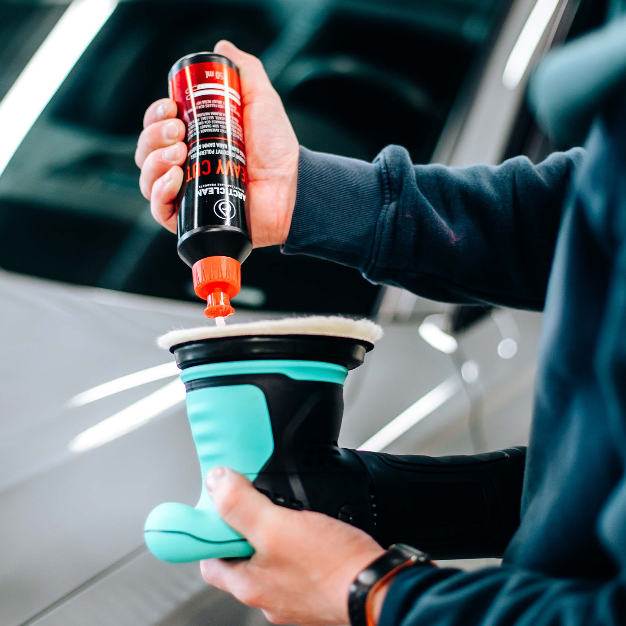 - Använd Techpad medium foam tillsammans med Heavy cut compound alt. Finishing compound eller Polish & sealant