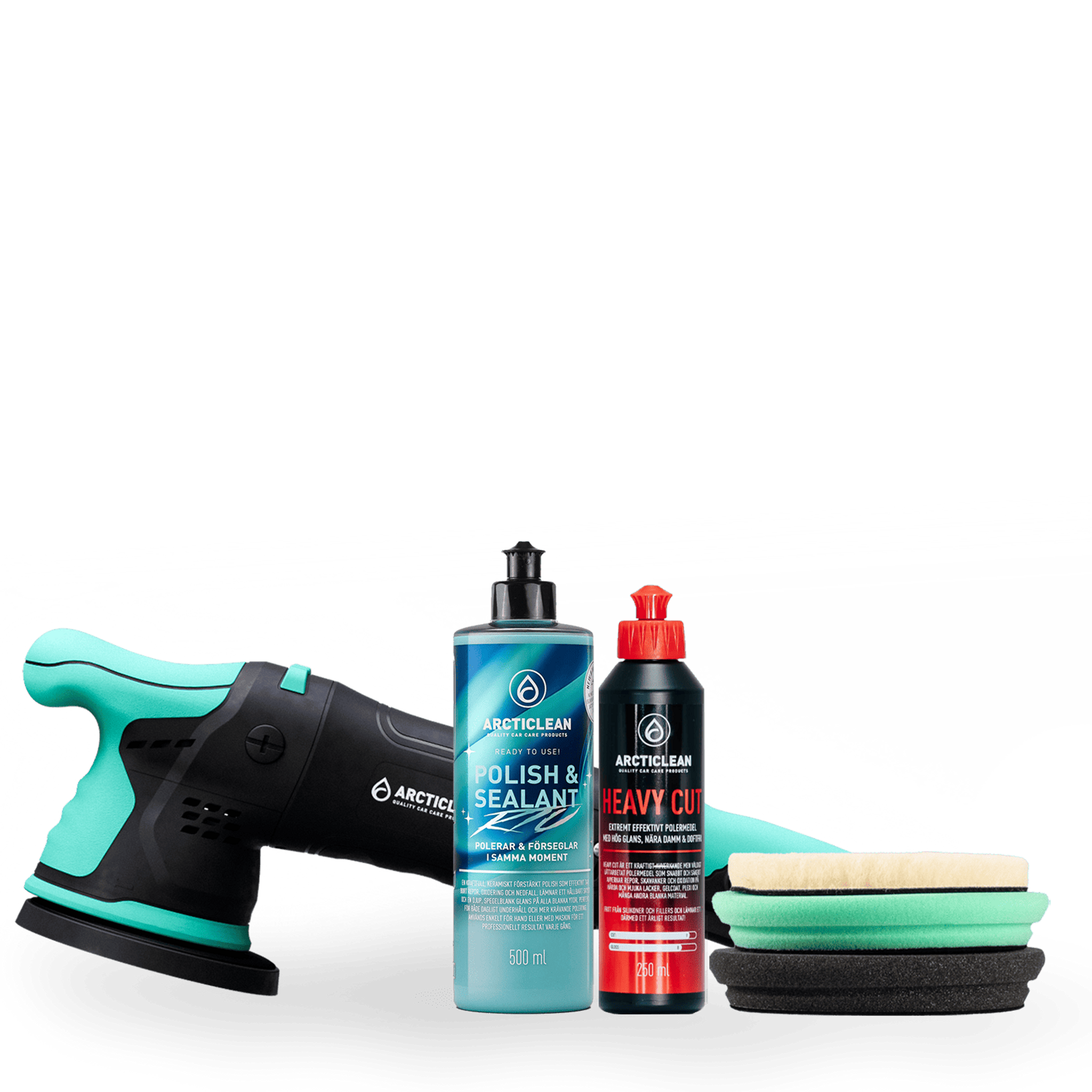 Ett slimmat men kraftfullt polerpaket där du får med vår genom tiderna bästa polermaskin - AC/DA15-125 V2 tillsammans med de polermedel och polertrissor du behöver oavsätt om du vill göra en 1-stegspolering eller vill gå all in och köra 3-steg.
