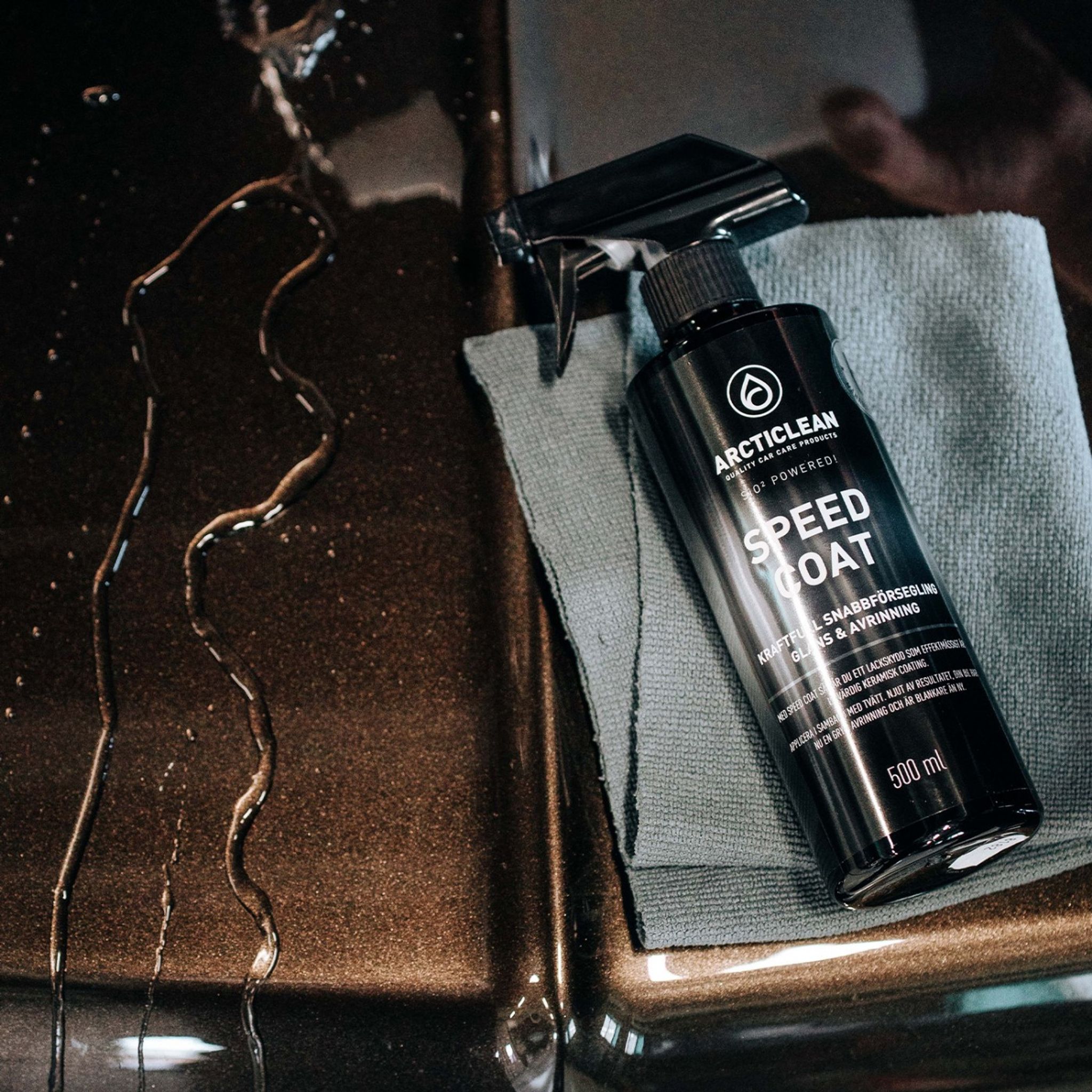 Speed coat är lätt att missta för ett snabbsprayvax, Speed coat har en väldigt hög koncentration av Aminosiloxan och Kiseldioxid (Si02) vilket ger ett extremt bra skydd med lång hållbarhet men gör även att du måste applicera med en viss försiktighet.