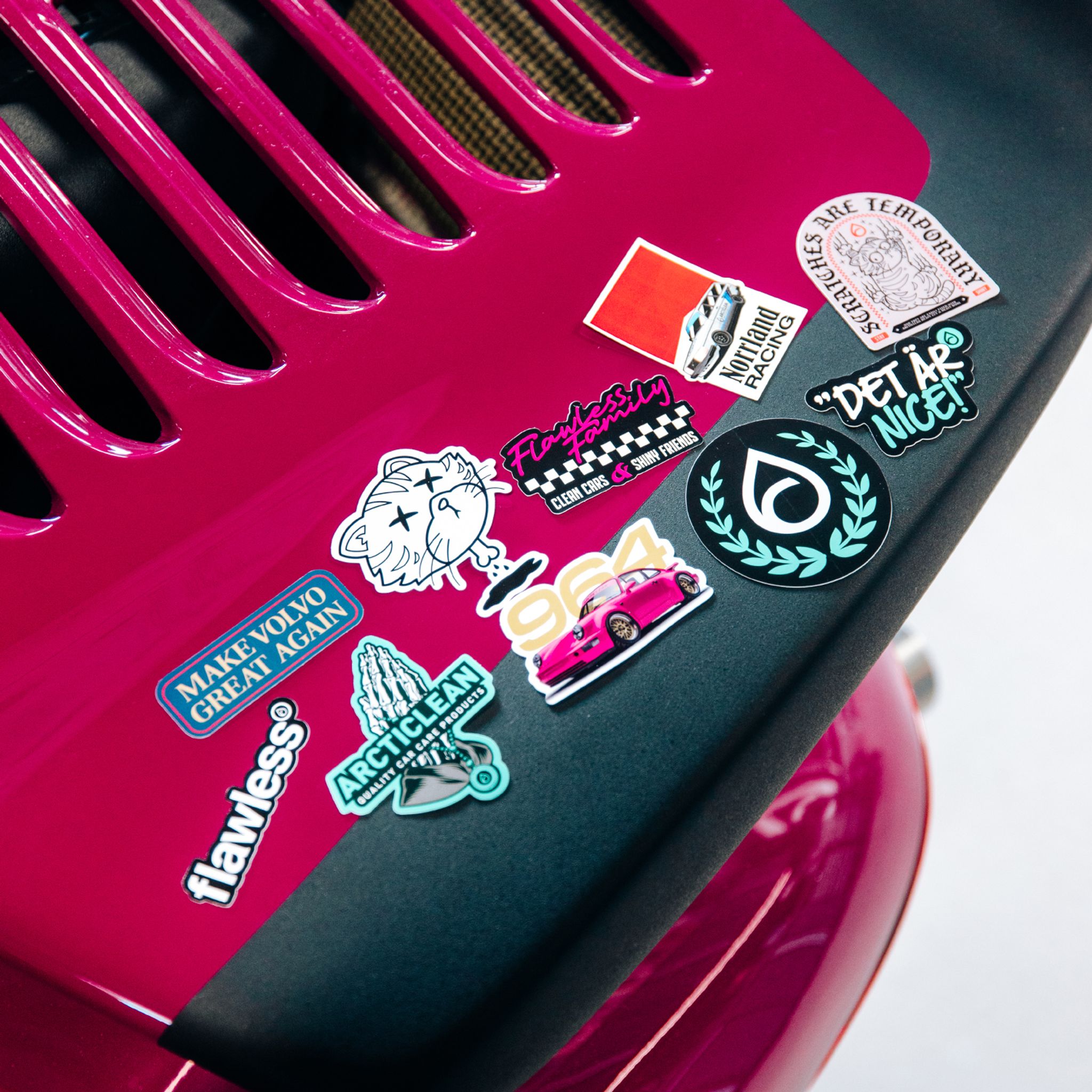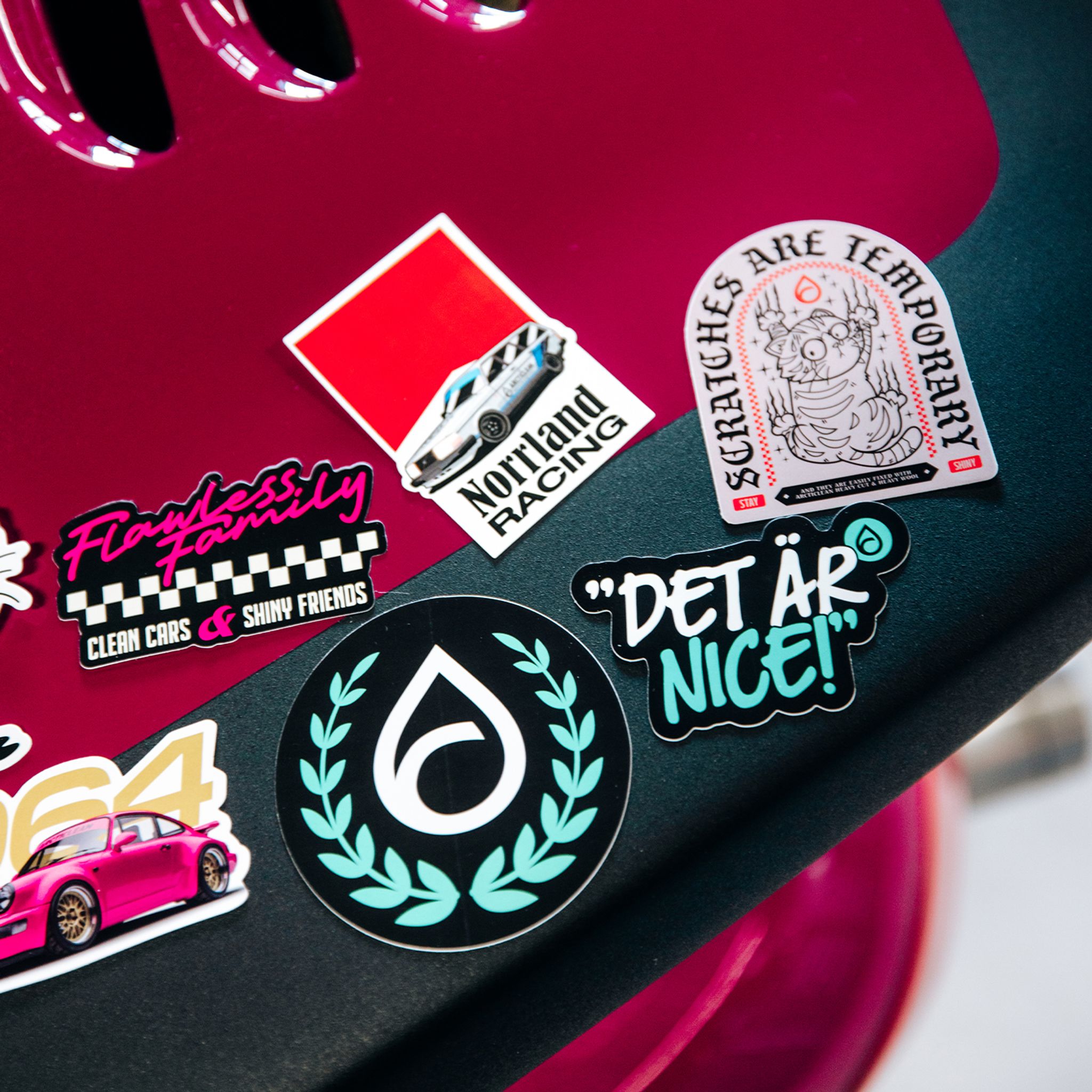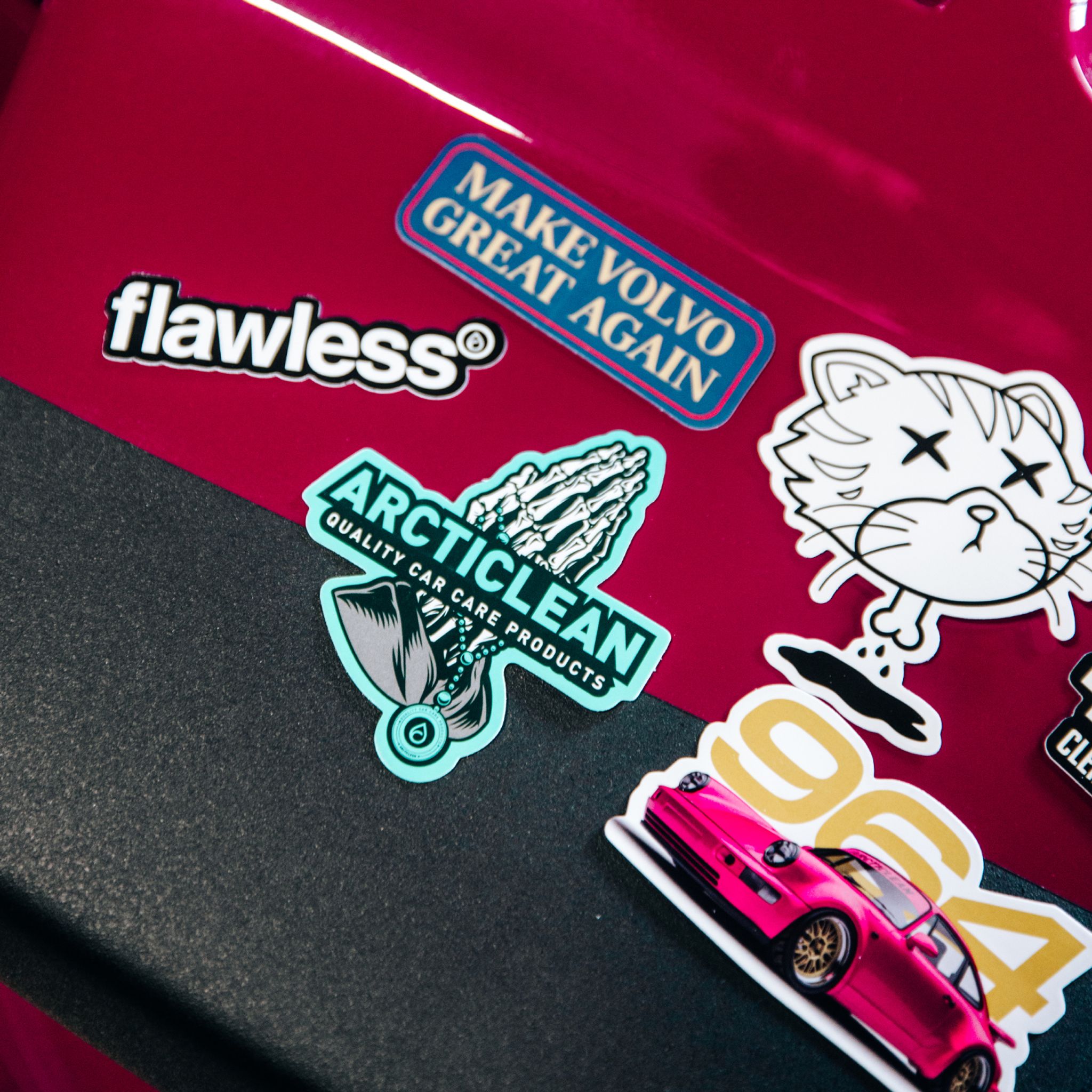 Det är nice! Det här stickerpacket innehåller 10 st stickers med Arcticlean motiv – bilar, slogans och symboler som hör hemma på både laptop, verktygslåda och bilrutan.